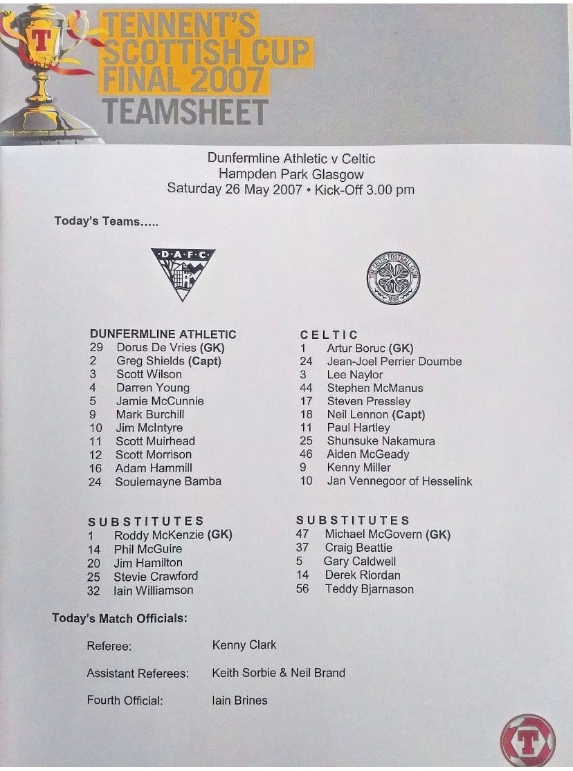SCOTTISH CUP FINAL 2007 CELTIC V DUMFERMLINE TEAM